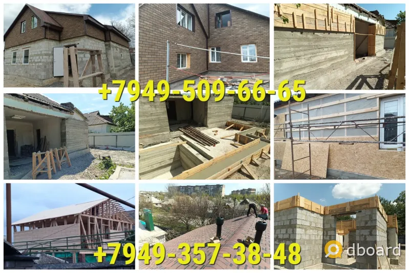 Построим дом, поэтапно, грамотно с соблюдением строительных норм и правил, баню, хоз-блок, террасу, беседку, теплицу и другие постройки. Выполним реконструкцию аварийного или купленного дома уже с вашими пожеланиями. Выполним бетонные работы : фундаменты, отмостки, опорные стены, подвалы, армопояс, бассейн из бетона в черновом исполнении, садовые дорожки, въезд на участок, бетонные работы на свайных основах. Укрепим разрушающийся фундамент с гарантией навсегда. Построим крышу, мансарду. Надстроим второй этаж с поднятием потолка первого этажа на нужную высоту, при необходимости. Выполним наружную гидроизоляцию подвального помещения на всю глубину подвала, построим дренажную систему для отвода грунтовых и дождевых вод. Выполним другие строительные работы которые связаны с нашим умением. Обращайтесь добрые, серьезные, адекватные люди. Не большая трудолюбивая бригада правильных мужчин с многолетним опытом в строи- тельстве. С уважением Александр! +7949-509-66-65, +7949-357-38-48