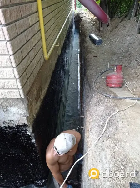Выполняем гидроизоляционные работы по защите фундаментов подвальных помещений и различных построек от проникновения и впитыванию в бетон или в кирпичную и иную кладку грунтовых и дождевых вод. Технология позволяет защитить стены подвалов домов от сырости, и предотвращает появления грибка и плесени внутри помещения. Также при производстве указанных работ, есть возможность при необходимости, построить дренажную систему и утеплить фундамент, подчеркиваю : если это нужно! Определяем проблему во время выемки грунта при выполнении гидроизоляции. Уважаемые заказчики! Уточняю простыми словами : Гидроизоляция не отводит воду от фундамента, гидроизоляция предотвращает впитывание влаги в бетон. в кладку, а воды от фундамента отводит правильно выполнена дренажная система. Спасибо !) Работы производим во всех районах Донецка и Макеевки и на дачах. С уважением Александр. +7949-509-66-65