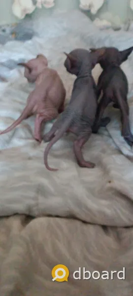 - Предлагаются к бронированию котята Канадского сфинкса Все девочки ( Две чёрные одна голубого окраса и одна сиамского типа ) Рождены 24 июня Будут готовы переехать в новую семью в начале или средине августа когда научаться ходить в лоток и кушать самостоятельно Цена 15 тыс Тел +79494785036 Находимся в Донецке